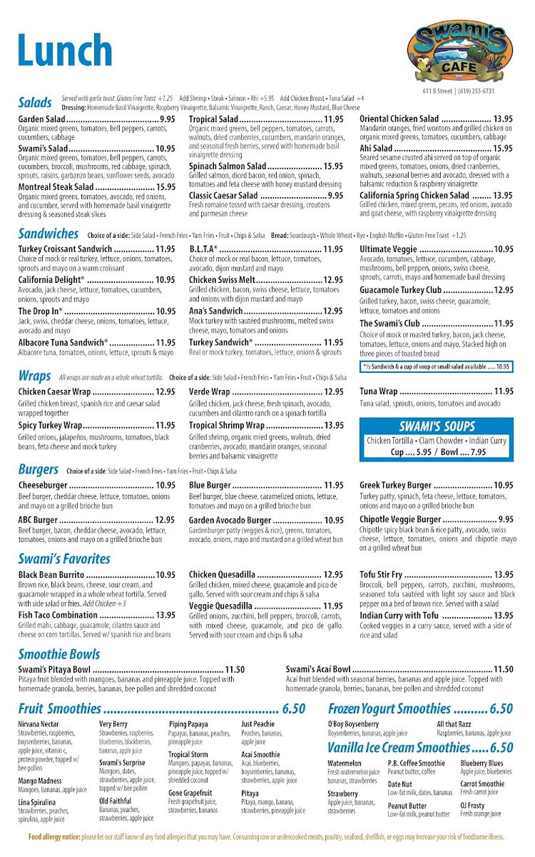 If you're in the mood for a laid-back, yet delicious dining experience, Swami's Café Downtown Menu has you covered. Located at 611 B St, in the heart of San Diego, this cozy spot offers a menu that blends fresh, local ingredients with bold flavors. Whether you're grabbing a bite after a day of exploring downtown or just looking for a casual spot to relax, Swami’s is the perfect destination.